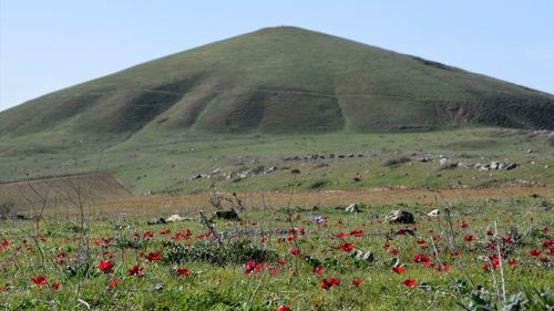 Manisa'nın 'Anadolu'nun piramitleri' olarak bilinen Lidya Tümülüsleri, baharla birlikte çiçeklerle süslendi.