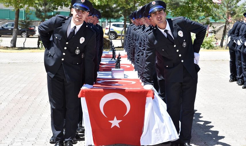 Tören sırasında dereceye giren polislere diploma ve hediyeler veren Vali Ahmet Karakaya, İl Müftüsü Kadir Koçak tarafından yapılan dua ile törene devam edildi. 213 polis adayı, yemin ederek kep atarak mezuniyet sevincini aileleriyle paylaştı.