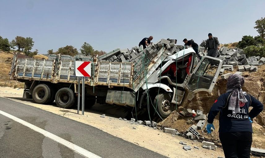 Bitlis'in Hizan ilçesinde yol kenarındaki kayaya çarpan briket yüklü kamyonun sürücüsü hayatını kaybetti.