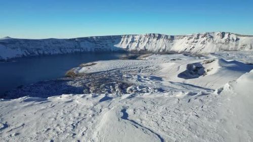 Bitlis'in Nemrut Kalderası, Van Gölü kıyıları ve Süphan Dağı karla kaplanarak kartpostallık görüntüler oluşturdu; doğaseverlerin ilgisini çekiyor.