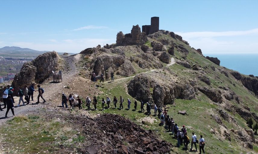 Bitlis'in Adilcevaz ilçesinde öğretmenler, Adilcevaz Kalesi ve Mucizeler Manastırı'nın bulunduğu bölgede doğa yürüyüşü gerçekleştirdi.