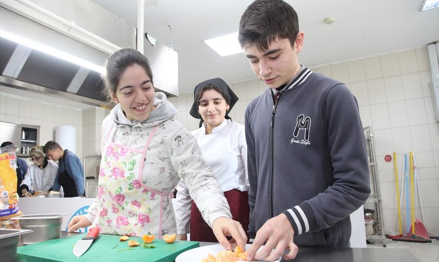 Bitlis'in Ahlat ilçesinde düzenlenen anlamlı etkinlikte, 20 hafif zihinsel engelli öğrenci, Bitlis Eren Üniversitesi Kanık Uygulamalı Bilimler Yüksekokulu Gastronomi ve Mutfak Sanatları Bölümü mutfağında kahvaltı hazırladı.