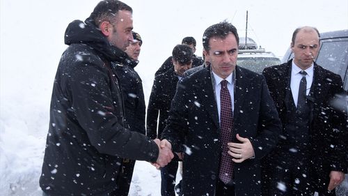Bitlis'te kar nedeniyle kapanan köy yollarını açmaya çalışan ekiplere Vali Karakaya tatlı ikram etti.