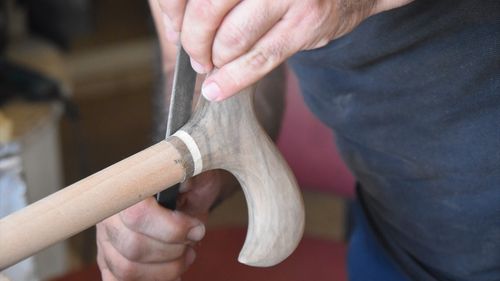 Bitlis'in Ahlat ilçesindeki baston ustası Refa Gökbulak, Malazgirt Zaferi'nin yıl dönümüne özel bastonlar üretti.