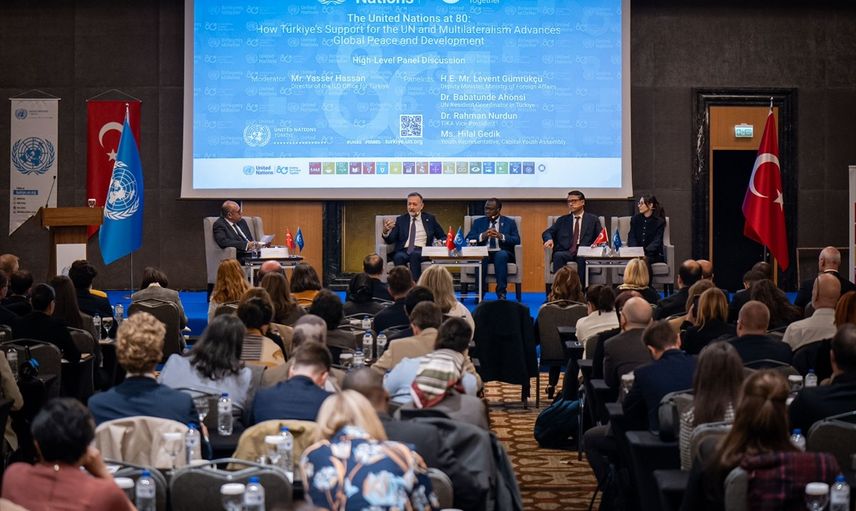 Ankara'da düzenlenen 'Birleşmiş Milletler'in 80'inci Yıl Dönümü: Türkiye'nin BM ve Çok Taraflılığa Desteği Küresel Barış ve Kalkınmayı Nasıl İlerletiyor' başlıklı panel, başkentte bir otelde gerçekleştirildi. Panelin açılış konuşmasını BM Türkiye Mukim Koordinatörü Babatunde Ahonsi yaptı.