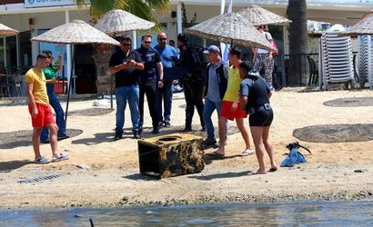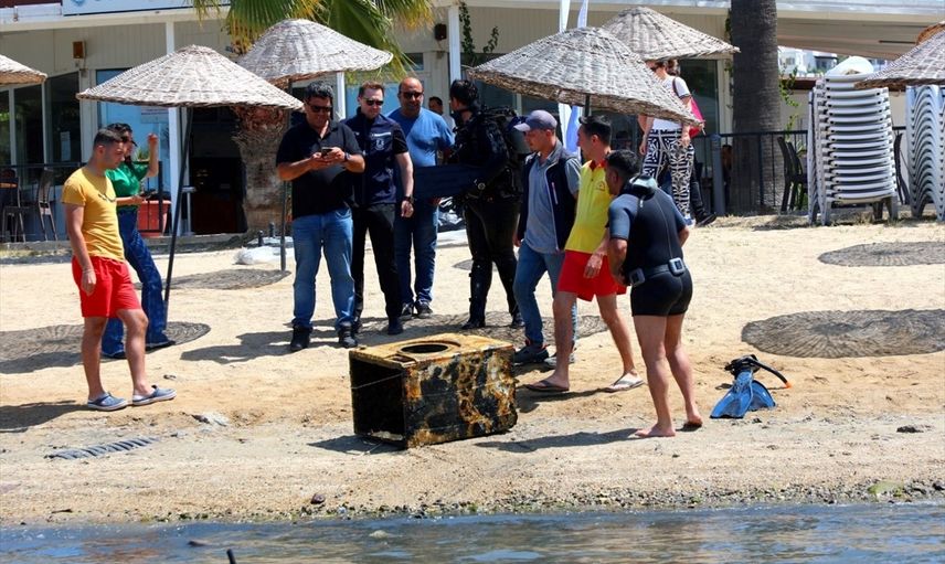 Muğla'nın Bodrum ilçesinde, Bodrum Belediyesi tarafından düzenlenen deniz dibi temizliği etkinliğiyle deniz altından çıkartılan atıklar dikkat çekti.
