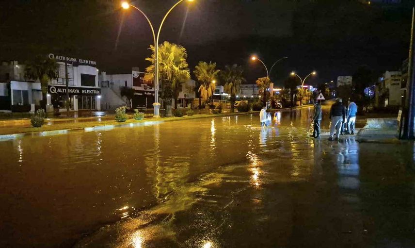 Muğla’nın Bodrum ilçesinde sabaha karşı etkili olan sağanak yağış, zaman zaman doluyla birlikte şiddetini artırdı. Yağış sırasında dereler taştı, yollar göle döndü ve sel suları taşkınlara yol açtı. Konacık Atatürk Bulvarı’nda 3 yerde su birikintisi nedeniyle yol çift yönlü olarak trafiğe kapandı. Konacık ve Gümbet bölgelerinde ev ve iş yerlerini su bastı; sel sularıyla taşlar ve ağaç dalları yollara sürüklendi.