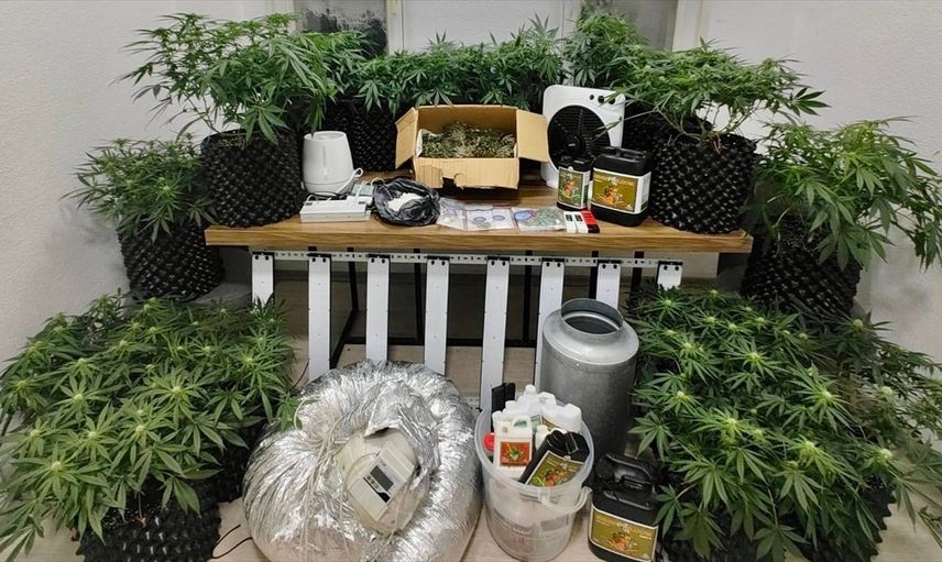 Gündoğan Mahallesi'nde belirlenen adreste yapılan aramada, 1.050 gram satışa hazır kurutulmuş sentetik uyuşturucu, 1.100 gram likit esrar, 10 gram kokain, 20 kök kenevir bitkisi, 65 parçadan oluşan iklimlendirme ve ışık sistemi ve 2 cep telefonu ele geçirildi.