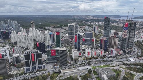 İstanbul Boğazı'ndaki köprülere, 29 Ekim Cumhuriyet Bayramı'nın 102. yıl dönümü dolayısıyla Türk bayrakları asıldı.