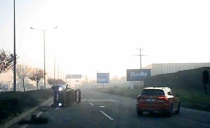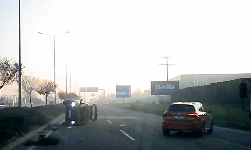 BOLU’DA D-100 KARA YOLUNDA SABAH SAATLERİNDE BİR OTOMOBİLİN DEVRİLİĞİ KAZANIN ARAÇ İÇİ KAMERA GÖRÜNTÜSÜ ORTAYA ÇIKTI. DEVRİLEN OTOMOBİLE MAKAS ATAN BAŞKA BİR OTOMOBİLİN ÇARPTIĞI VE SÜRÜCÜNÜN DİREKSİYON HAKİMİYETİNİ KAYBEDEREK KAZA YAPTIĞI KAMERAYA YANSIDI.
