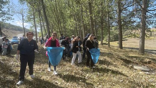 Bolu'da gönüllüler, Gençlik ve Spor İl Müdürlüğü koordinasyonunda Gölköy Baraj Gölü çevresinde Dünya Temizlik Günü'nde plastik, cam şişe ve ambalaj topladı.