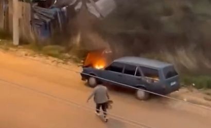 Bolu'da, Kalıcı Konutlar Mahallesi ara sokakta seyreden Fiat Kartal marka otomobilin motor kısmı henüz bilinmeyen nedenle alev aldı.