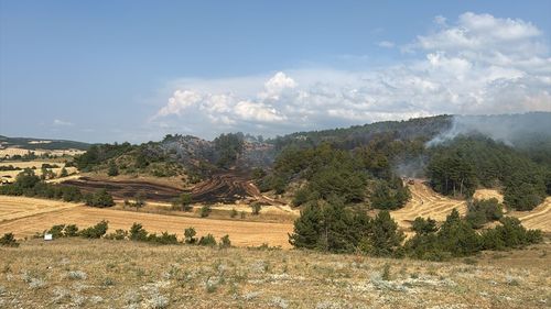 Bolu'nun Göynük ilçesinde çıkan orman yangınları, havadan ve karadan müdahale ile söndürülmeye çalışılıyor.