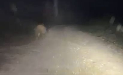 Bolu Dağı’nın Elmalık köyü mevkiinde bir aracın önüne çıkan ayı, aracın ışıklarından korkarak kaçtı. O anlar güvenlik kamerasına yansıdı.
