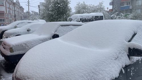 Bolu kent merkezi, nisan ayında yağan karla beyaz örtüyle kaplandı. Belediyenin karla mücadele çalışmaları sürüyor.