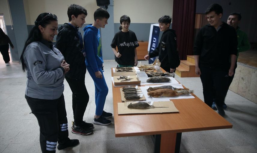 Bolu'da öğrenciler, Bolu Abant İzzet Baysal Üniversitesi (BAİBÜ) Ziraat Fakültesince hazırlanan proje kapsamında yaban hayatı hakkında bilgilendiriliyor.