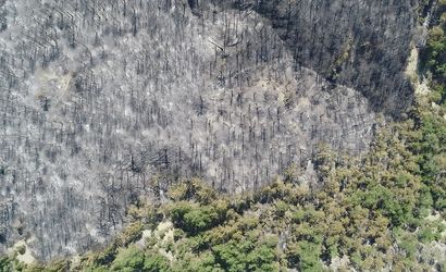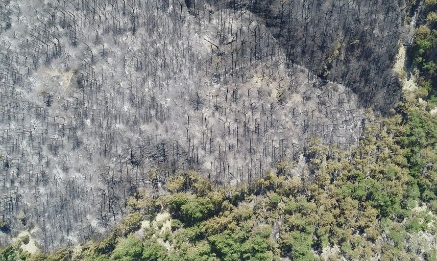 Bolu'nun Göynük ilçesinde çıkan yangında zarar gören ormanlık alan Dedeler Köyü mevkisinde havadan görüntülendi.