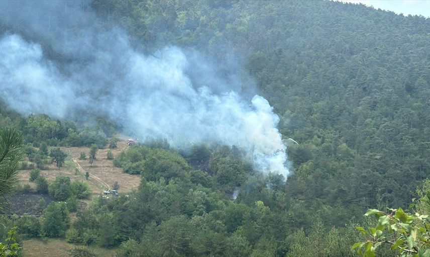 Bolu'da ormanlık alanda çıkan yangın, ekiplerce söndürülmeye çalışılıyor.