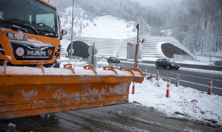 İstanbul ile Ankara arasında ulaşımı sağlayan Anadolu Otoyolu'nun Bolu Dağı Tüneli kesiminde kar etkisini gösteriyor.