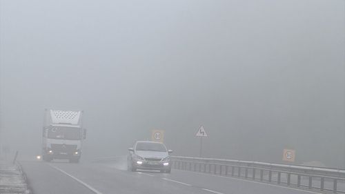 Bolu Dağı geçişinde sis nedeniyle görüş mesafesi düştü, sürücüler hız ve takip mesafesi konusunda uyarıldı.