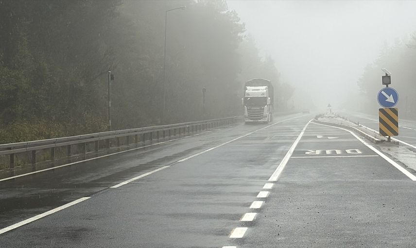 Ankara ve İstanbul arasındaki önemli güzergahlardan D-100 kara yolunun Bolu Dağı kesiminde sis ve sağanak, bölgedeki ulaşımı olumsuz etkiliyor.
