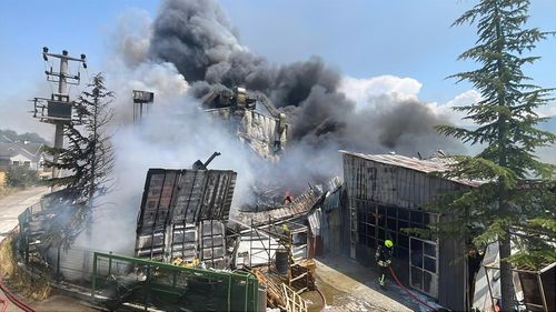 Bolu'da bir medikal fabrikasında çıkan yangına itfaiye ve sağlık ekipleri müdahale ediyor.