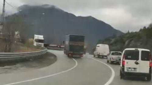 Borçka-Artvin yolunda tır sürücüsünün virajda 5 aracı hatalı sollaması, karşı yönden araç gelmemesi sayesinde kazaya dönüşmedi.