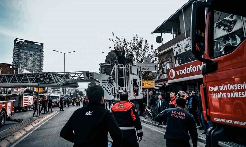 İhbar üzerine olay yerine 12 araç ve personel ile İzmir Büyükşehir Belediyesi İtfaiye Dairesi Başkanlığı ekipleri sevk edildi. Yapılan incelemede iş hanının çeşitli katlarında 12 vatandaşın mahsur kaldığı belirlendi. Ekipler, arama-kurtarma ve söndürme çalışmalarını eş zamanlı yürüterek vatandaşları bulundukları yerlerden güvenli şekilde tahliye etti.