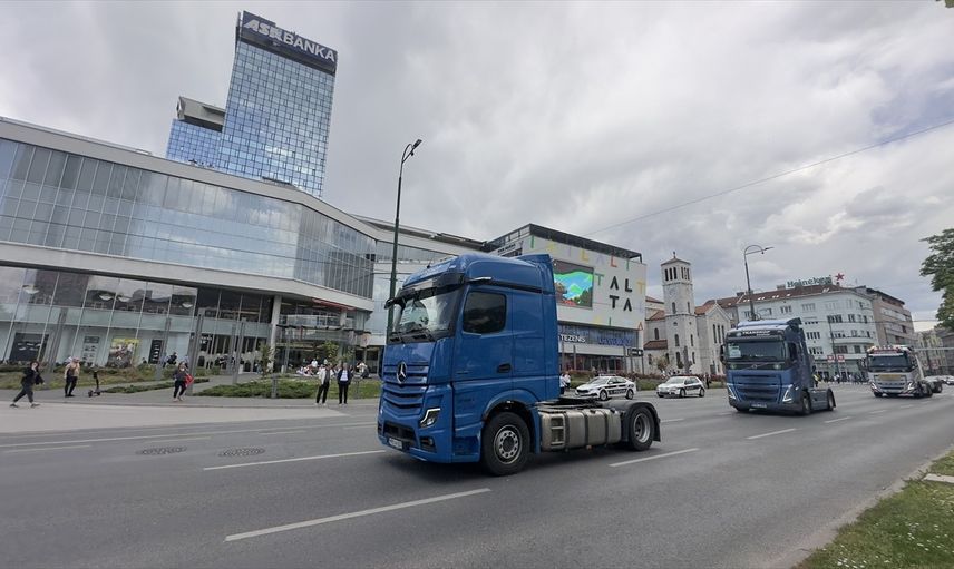 Saraybosna'da bir araya gelen tır şoförleri, komşu ülkelerdeki gibi süreçlerin dijitalleştirilmesi ve sınırlarda 16 saate varan bekleme sürelerinin azaltılması için çözüm bulunmasını talep ediyor.
