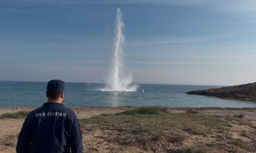 Çanakkale'nin Bozcaada ilçesi açıklarında, sahilden yaklaşık 50 metre uzaklıkta bulunan mayın, ekiplerin bölgedeki güvenlik önlemlerini tamamlamasının ardından imha edildi.