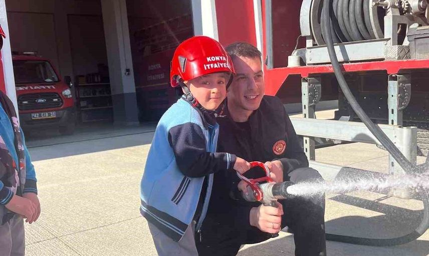Konya Büyükşehir Belediye Başkanı Uğur İbrahim Altay'ın destekleriyle hayata geçirilen uygulamalı program kapsamında, ilçe genelindeki 12 ilkokultan gelen birinci sınıf öğrencileri itfaiye tesislerinde ağırlandı. Eğitimde miniklere, muhtemel bir afet veya yangın anında nasıl davranmaları gerektiği, yangının tehlikeleri ve acil durumlarda ulaşılacak hatlar gibi hayati bilgiler aktarıldı.