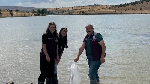 Çankırı Çerkeş'teki Bozoğlu Göleti ve Akhasan Barajı'na, 2025 Projesi kapsamında Amasya Yedikır'da üretilen 320 bin sazan yavrusu bırakıldı.
