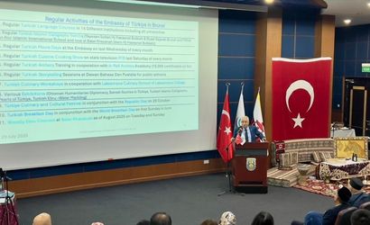 Brunei'nin başkenti Bandar Seri Begavan'daki Brunei Darusselam Üniversitesinde "Türkiye Kültür Günü" etkinliği düzenlendi. Üniversite tarafından Türkiye'nin Bandar Seri Begavan Büyükelçiliği ve Brunei Yunus Emre Enstitüsü (YEE) işbirliğinde düzenlenen etkinlikte, Türkiye'nin Bandar Seri Begavan Büyükelçisi Hamit Ersoy, konuşma yaptı.