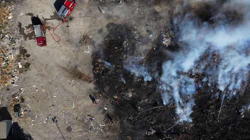 İzmir Buca Seyhan Mahallesi'nde plastik, tekstil ve moloz yığınında çıkan yangın, İzmir Büyükşehir Belediyesi itfaiye ekiplerince söndürüldü; esnaf çözüm istedi.