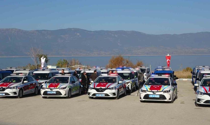 Burdur’da emniyet ve jandarma teşkilatlarına kazandırılan 56 yeni hizmet aracı, Burdur Gölü kıyısında düzenlenen törenle teslim edildi.