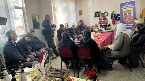 İl Jandarma Komutanlığı, Ağlasun Yeşilbaşköy'de 50 vatandaşa 6284, KADES, siber farkındalık ve uyuşturucuyla mücadele eğitimleri verdi.