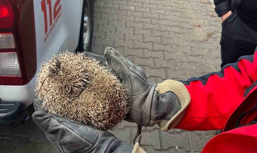 İhbar üzerine bölgeye sevk edilen Balıkesir Büyükşehir Belediyesi İtfaiye Daire Başkanlığı Burhaniye Grup Amirliği ekipleri, özel ekipman kullanarak kirpiyi dikkatle bulunduğu yerden çıkardı.