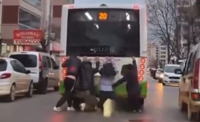 Bursa'nın Yıldırım ilçesine bağlı Millet Mahallesi Cengizhan Caddesi üzerinde seyir halindeki belediye otobüsünün arkasına tutunarak ilerleyen 4 çocuk, çevrede paniğe neden oldu.