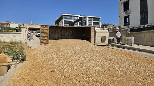 Bursa'da Freni Boşalan Kamyon Site Duvarına Çarparak Devrildi