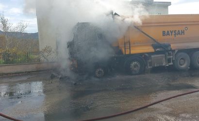 Kısa sürede alev topuna dönen kamyona, bölgeye sevk edilen itfaiye ekipleri müdahale etti.
