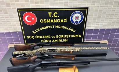 Bursa'nın Osmangazi ilçesinde av tüfeğiyle havaya ateş açtıkları iddia edilen 4 zanlı gözaltına alındı. Operasyonda 6 av tüfeği ve 1 kurusıkı tabanca ele geçirildi.