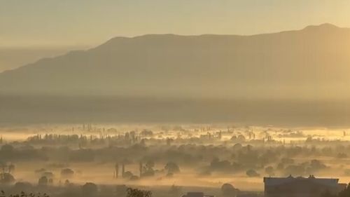 İnegöl'de sabahın erken saatlerinden itibaren etkili olan yoğun sis, görüşü yer yer 10 metreye kadar düşürüp kartpostallık manzaralar oluşturdu.
