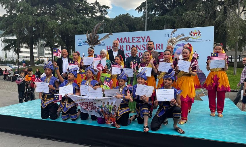 Malezya'nın geleneksel kıyafetleriyle sahne alan dansçılar, sergiledikleri koreografilerle Bursalıların büyük takdirini topladı. Gösteri sonrası katılımcılara belge ve hatıra fotoğrafı verildi.