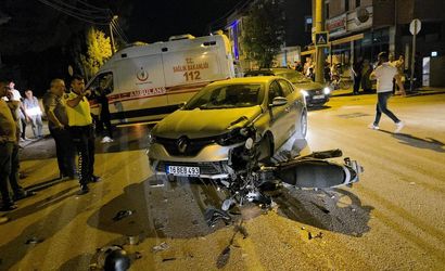Bursa'nın İnegöl ilçesinde otomobille çarpışan motosikletin sürücüsü ağır yaralandı.