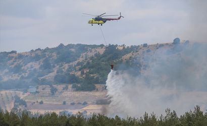 Bursa'nın Yenişehir ilçesinde, ormanlık alanda çıkan yangına havadan ve karadan müdahale ediliyor.