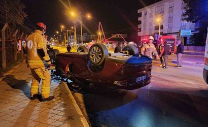 Edinilen bilgiye göre, ilçe merkezi yönünde seyir halinde olan 16 PU 058 plakalı otomobil sürücüsü hız nedeniyle direksiyon hakimiyetini kaybetti. Otomobil, aynı istikamette ilerleyen 16 EHU 57 plakalı kamyonete çarptı. Çarpmanın etkisiyle otomobil takla atıp sürüklenirken, kamyonetin çarpması sonucu yola devrilen bir trafik ışığı da görüldü.