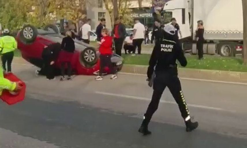 Bursa'nın merkez Nilüfer ilçesi Odunluk Mahallesi'nde saat 16.30 sıralarında meydana gelen kazada, iki otomobilin çarpışması sonucu bir araç takla attı ve sürücü içinde sıkıştı.
