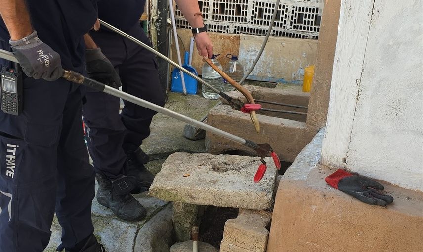 Olay, evin bahçesindeki su oluğundan gelen seslerin fark edilmesiyle başladı. Durumu fark eden vatandaşlar hemen itfaiyeye bildirdi.