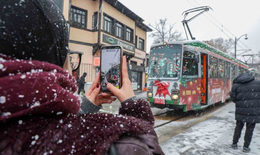 BURULAŞ tarafından hazırlanan tramvay, yılbaşı ışıkları ve özel süslemeleriyle kentin en işlek noktalarından biri olan Zafer Plaza çevresine ayrı bir hava kattı.