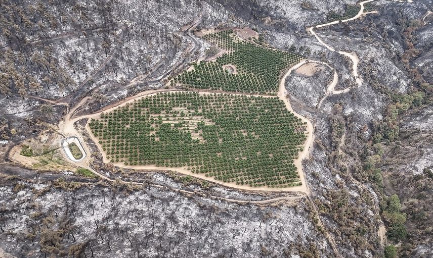 Bursa'nın Gürsu ve Kestel ilçeleri arasında 26 Temmuz'da meydana gelen orman yangınında, çevresindeki alanlar küle dönerken, 48 dönümlük nektarin bahçesi büyük bir şans eseri zarar görmedi. Yangın, hızlı bir şekilde kontrol altına alındı, ancak görmeyi bekledikleri tablo bahçenin yeşil kalmasıyla tersine döndü.